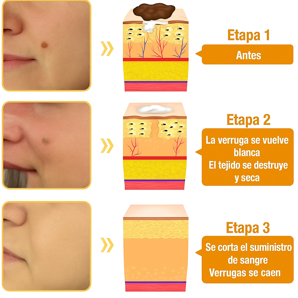 pesar de probar varios tratamientos, nada funcionó hasta que encontré este Spray. Con el uso diario constante, laverruga cutánea se redujo gradualmente hasta desaparecer por completo , dejando mi piel suave y clara. Realmente ha sido un gran cambio para mi confianza y mi bienestar general".- Carmen Quispe, 39 años | ⭐⭐⭐⭐⭐